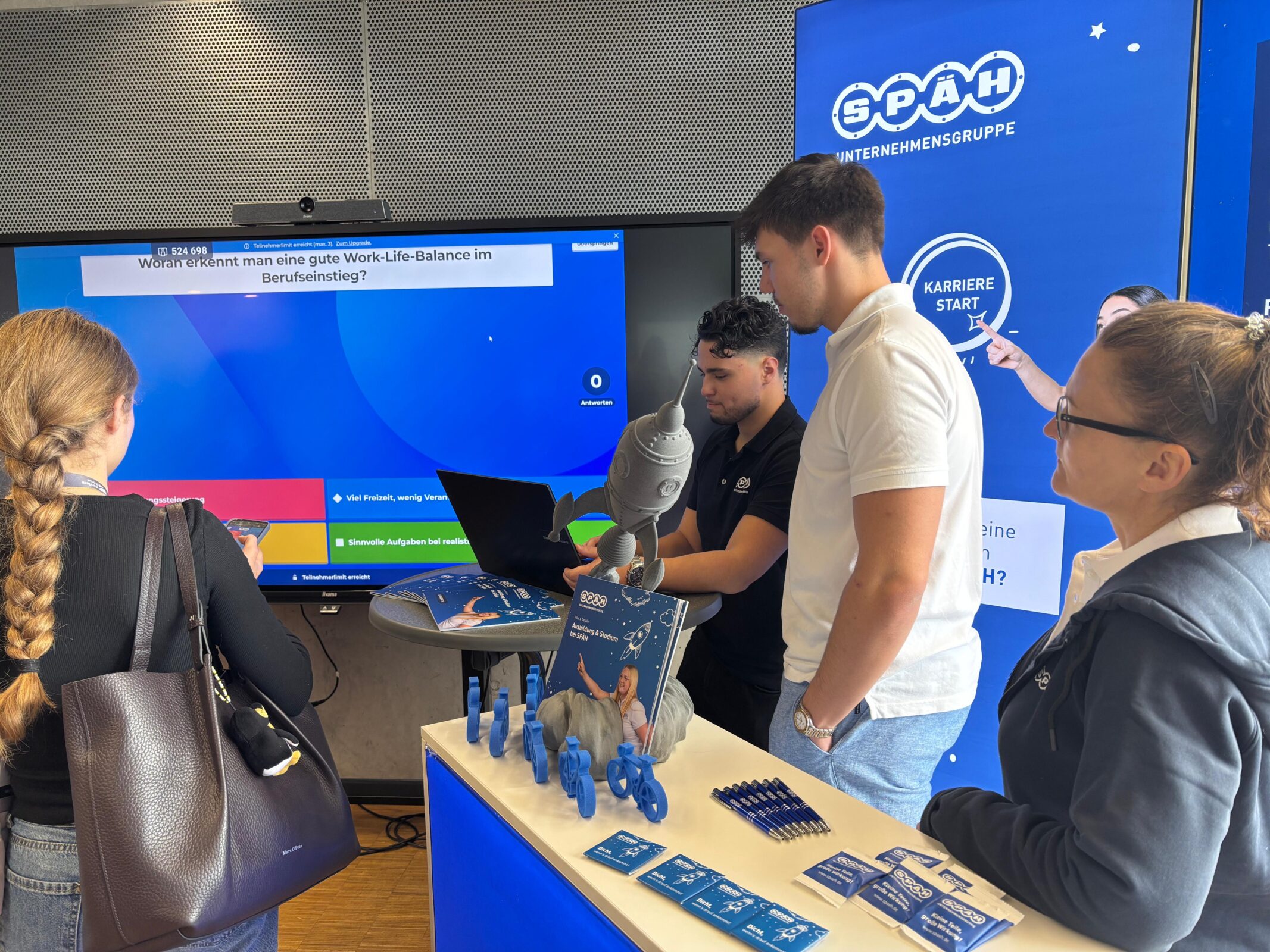 An unserem Stand präsentierten wir unsere aktuellen Stellenangebote, Ausbildungsplätze und Studienmöglichkeiten. Egal, ob kaufmännisch, technisch oder kreativ – wir konnten den Besucherinnen und Besuchern aufzeigen, welche vielfältigen Wege SPÄH in eine erfolgreiche berufliche Zukunft eröffnet.